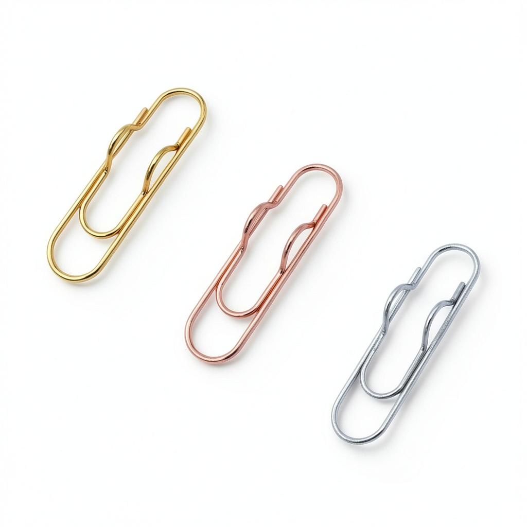This set includes 12 metal pen clips, with four each in gold, silver, and rose gold, allowing for mix-and-match options.